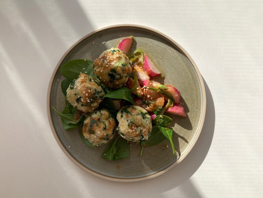 Frühlingskräuter-Knödel mit Misobutter und Radieschen